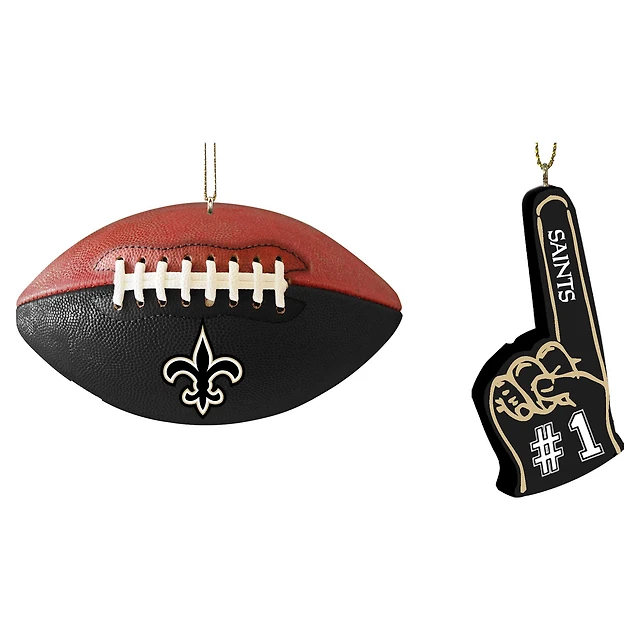 The Memory Company New Orleans Saints Two-Pack Football & Foam Finger Ornament Set