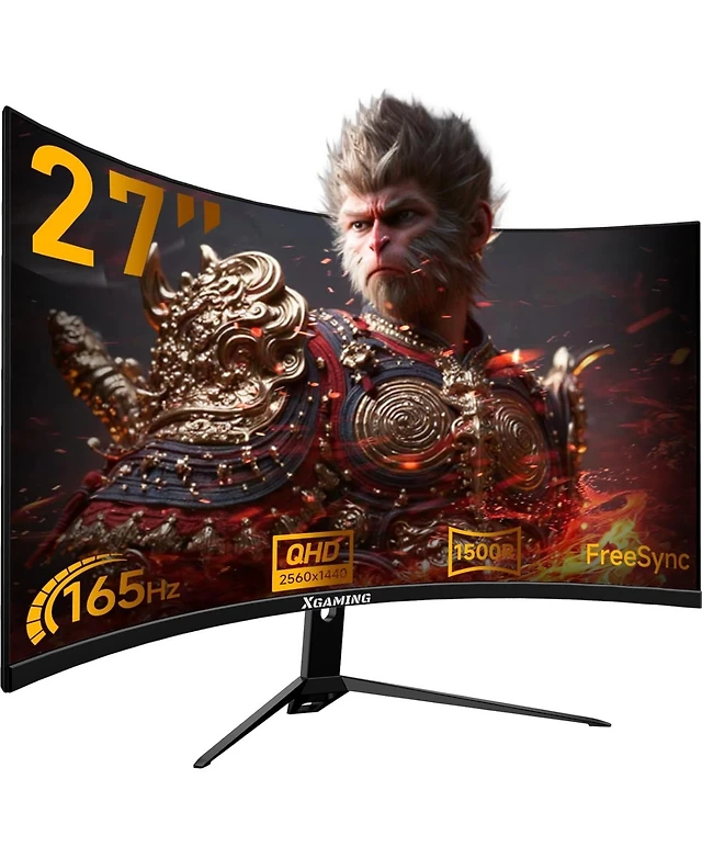 27 Inch Curved Gaming Monitor, Qhd 2560 x 1440 Computer Monitor 144Hz/165Hz, 16:9 Wide Hdr Display, FreeSync, 1ms Response, Pc Monitor Built-in Speake