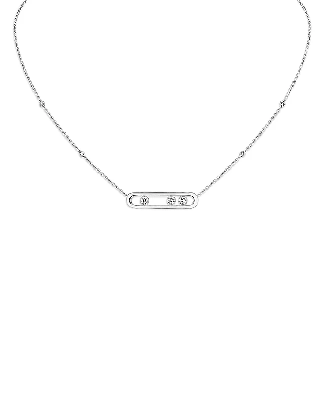 Messika 18K Yellow Gold Move Classique Diamond Polished Oval Bar Necklace, 17.71
