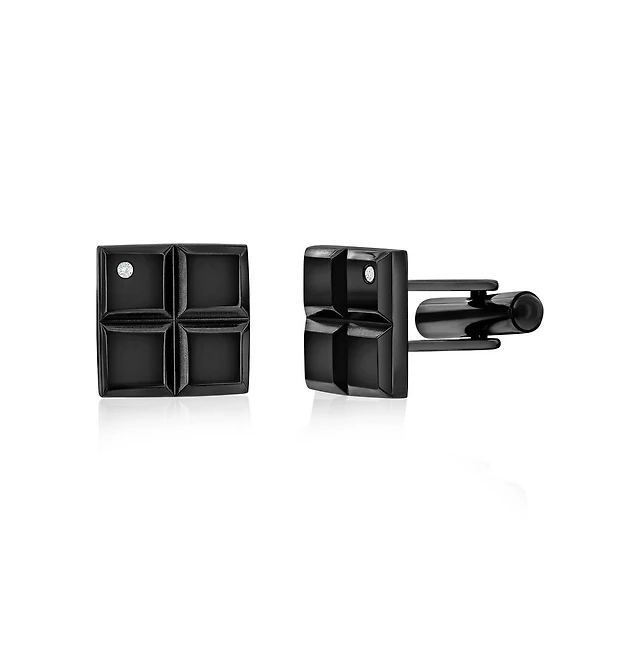 Stainless Steel Rectangle Checkered Design w/ Cz Cuff Links - Black Plated