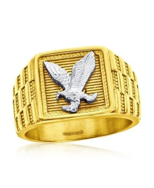 Stainless Steel Square Textured Eagle Design Ring Gold Plated