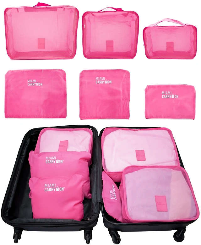 Miami CarryOn Set of 6 Neon Packing Cubes, Traveler's Luggage Organizer