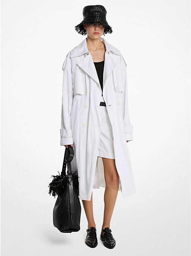 Kimono Sleeve Stretch Cotton Poplin Shirtdress