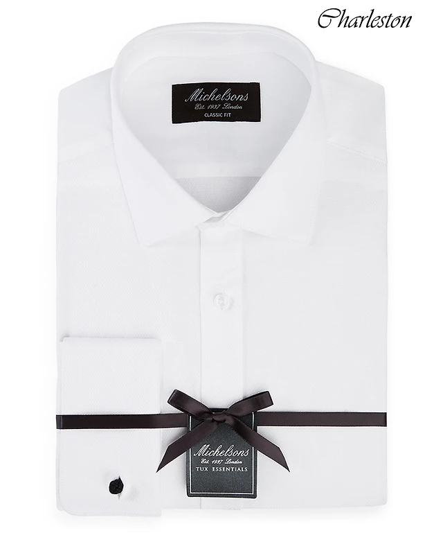 Michelsons Of London Mens Solid French Cuff Tuxedo Shirt Regular Slim Fit