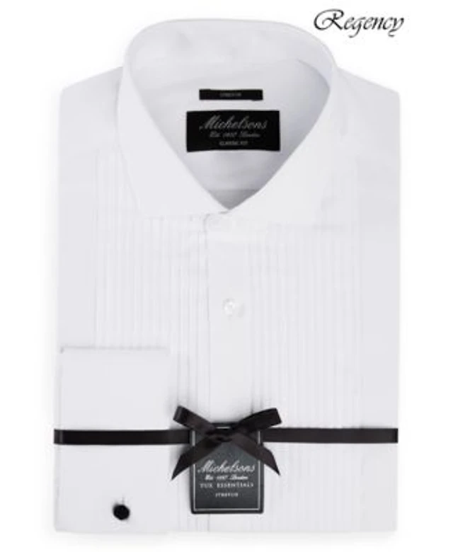 Michelsons Of London Stretch Pleated Bib French Cuff Tuxedo Shirt Regular Slim Fit