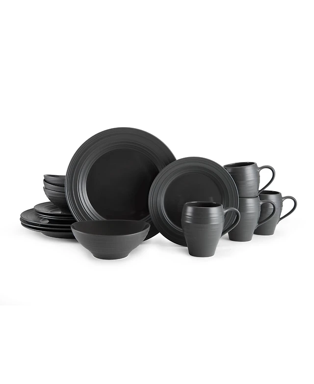 Mikasa Swirl Graphite 16 Piece Dinnerware Set, Service for 4
