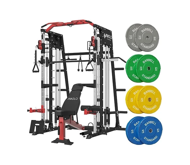 Mikolo Smith Machine, 2200lbs Squat Rack with Lat-Pull Down System & Cable Crossover Training Equipment Leg Hold-Down Attachment
