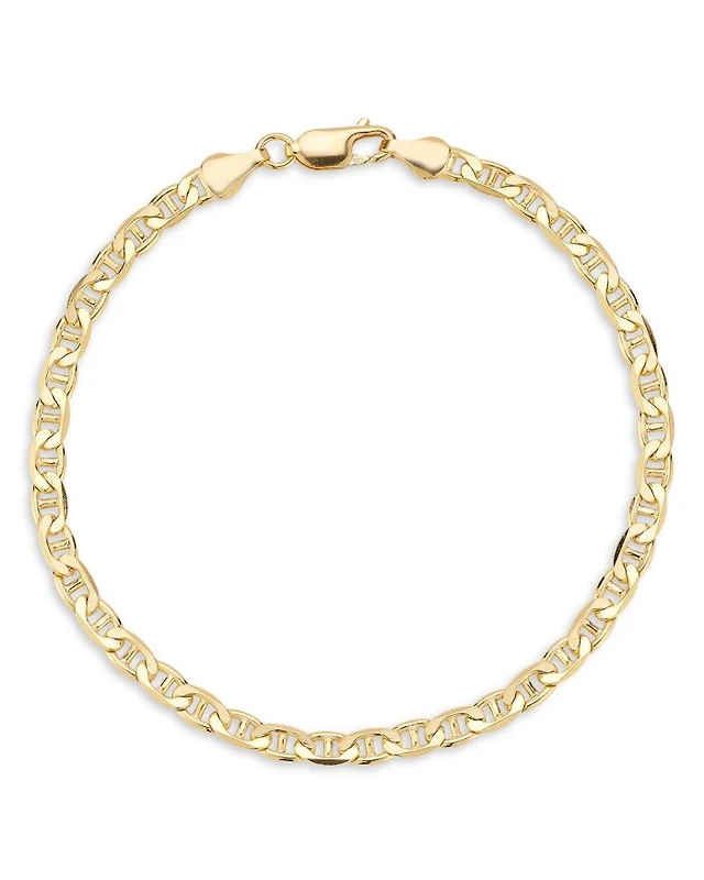 18K Yellow Gold On Sterling Silver 4mm Mariner Link Chain Bracelet