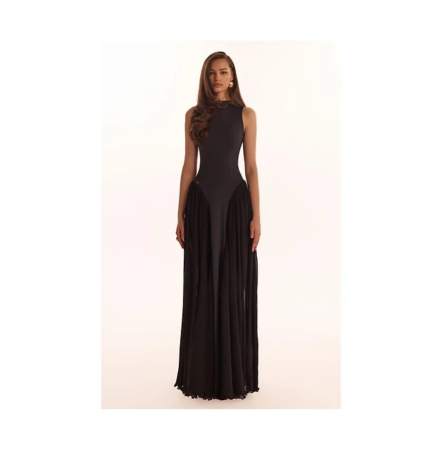 Milla Womens Nude Sleeveless Mock Neck Dress with a Pleated Maxi Skirt