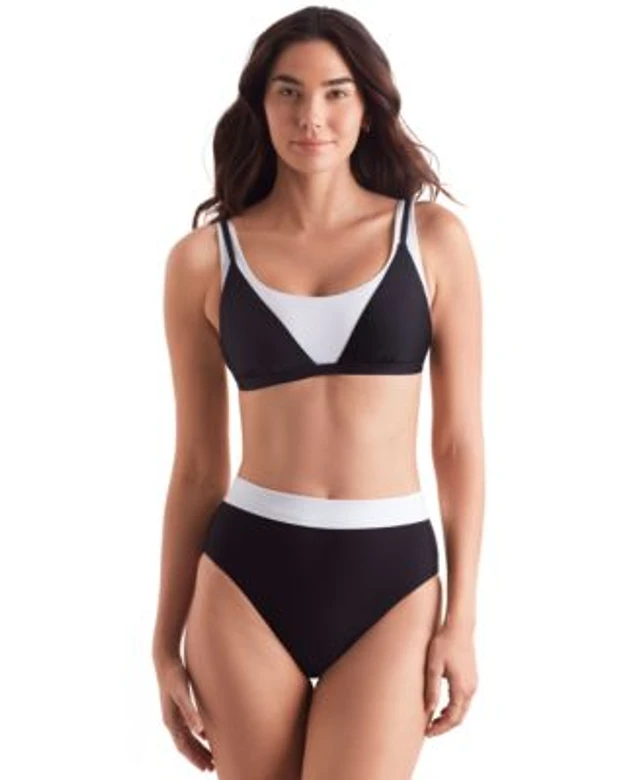 Mimi Flamingo Womens Drift Two Tone Bralette Bikini Top High Waist Bottoms