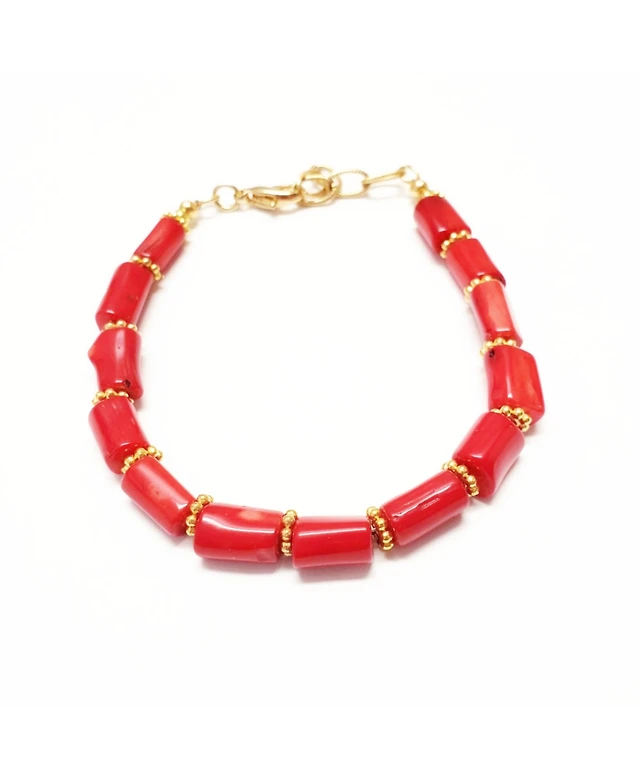 Minu Jewels Gold-Tone Moonstone & Red Coral Beaded Flex Bracelet