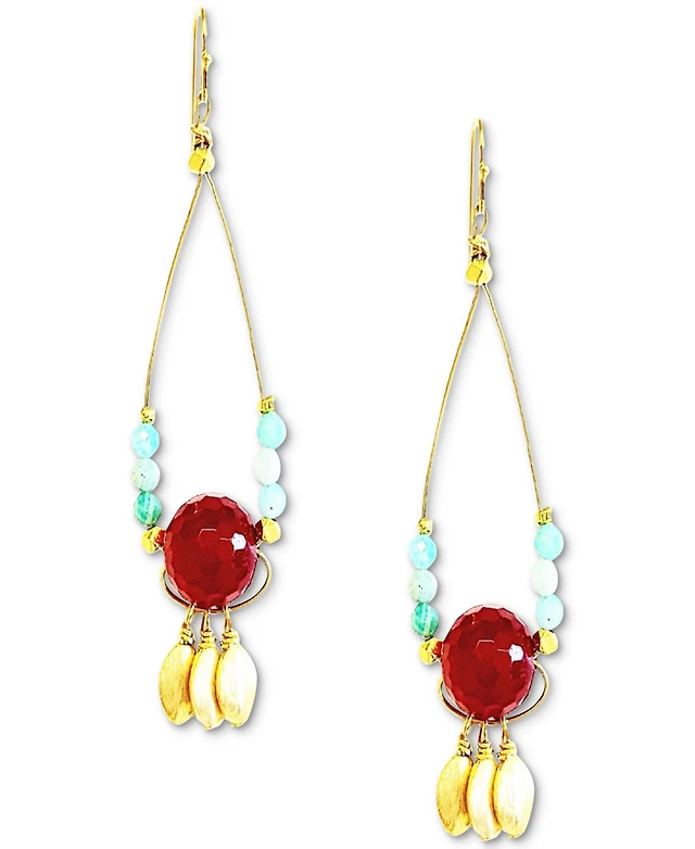 Minu Jewels Gold-Tone Red Jade & Amazonite Beaded Chandelier Earrings