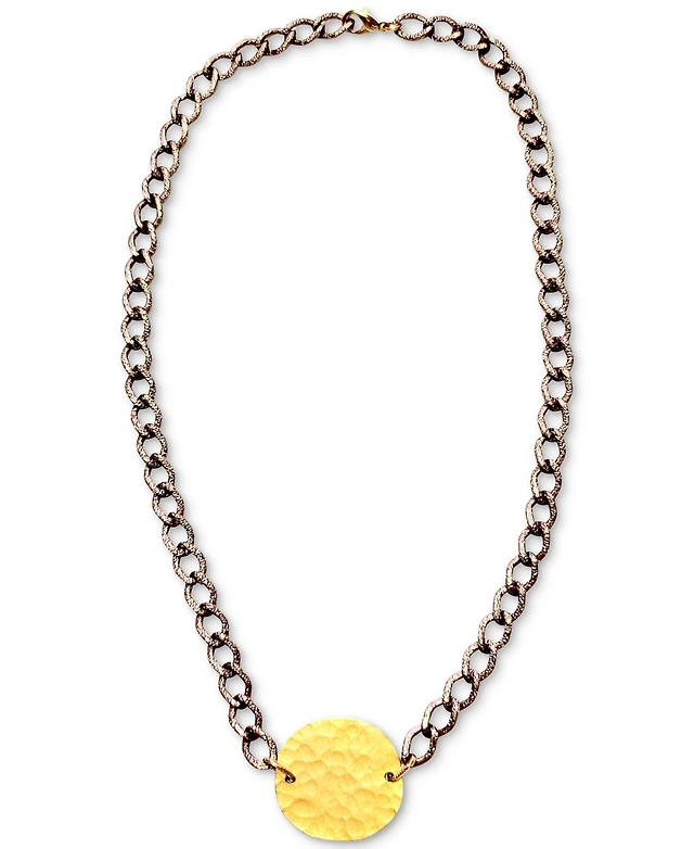 Minu Jewels Two-Tone Hammered Disc Pendant Necklace, 16" + 1" extender