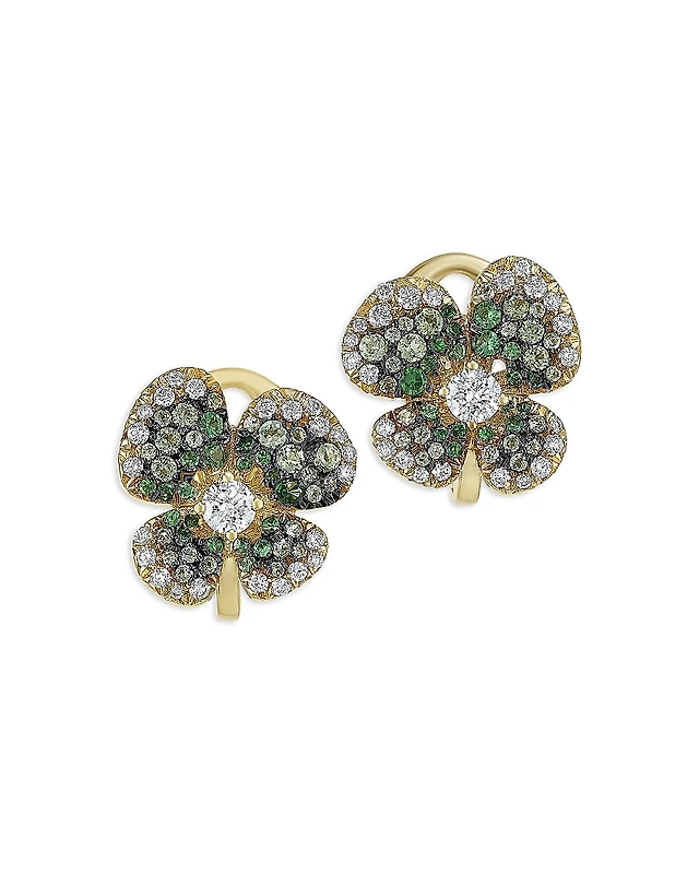 Miseno Jewelry 18K Yellow Gold Ischia Ombre Clover Tsavorite & Diamond Stud Earrings