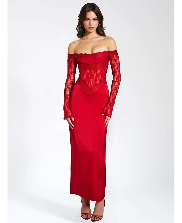 Miss Circle Women's Nessa Red Lace Satin Corset Maxi Dress