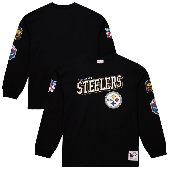 Men's Mitchell & Ness Black Pittsburgh Steelers Training Camp Vintage Logos Long Sleeve T-Shirt