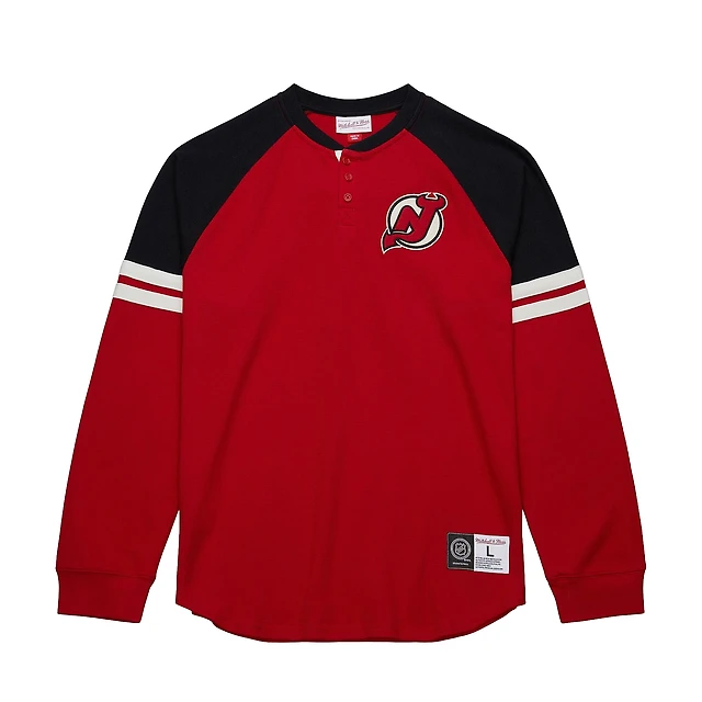 Men's Mitchell & Ness Red New Jersey Devils Thermal Henley Long Sleeve T-Shirt