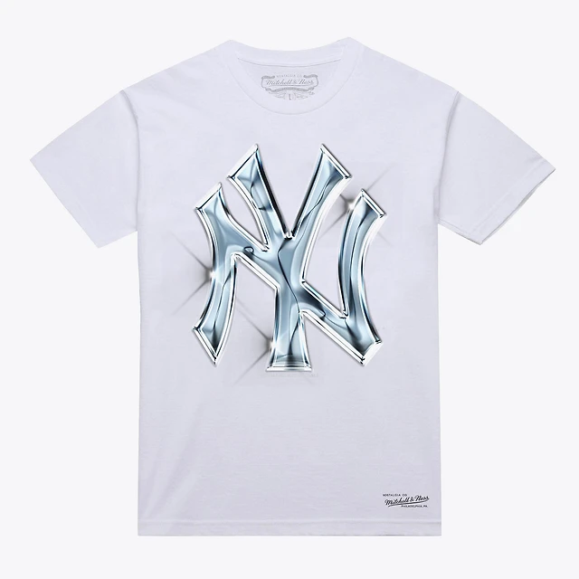 Men's White New York Yankees Liquid Chrome T-Shirt