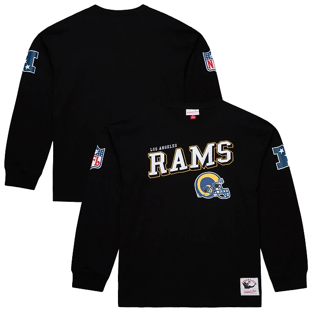 Men's Mitchell & Ness Black Los Angeles Rams Training Camp Vintage Logos Long Sleeve T-Shirt