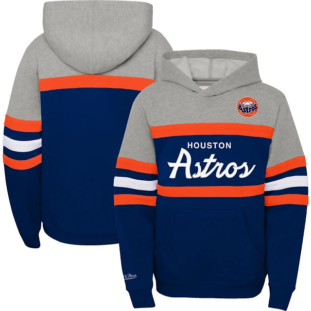 Youth Mitchell & Ness Heather Gray/Navy Houston Astros Cooperstown Collection Head Coach Pullover Hoodie