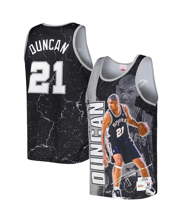 Men's Mitchell & Ness Tim Duncan Black San Antonio Spurs Hardwood Classics Player Burst Tank Top