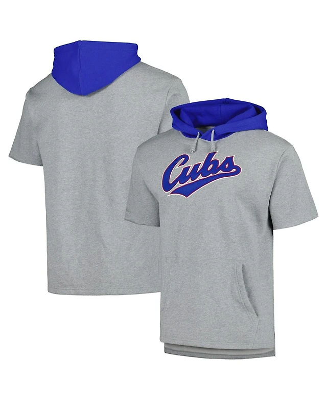 Men's Mitchell & Ness Heather Gray Chicago Cubs Postgame Short Sleeve Pullover Hoodie