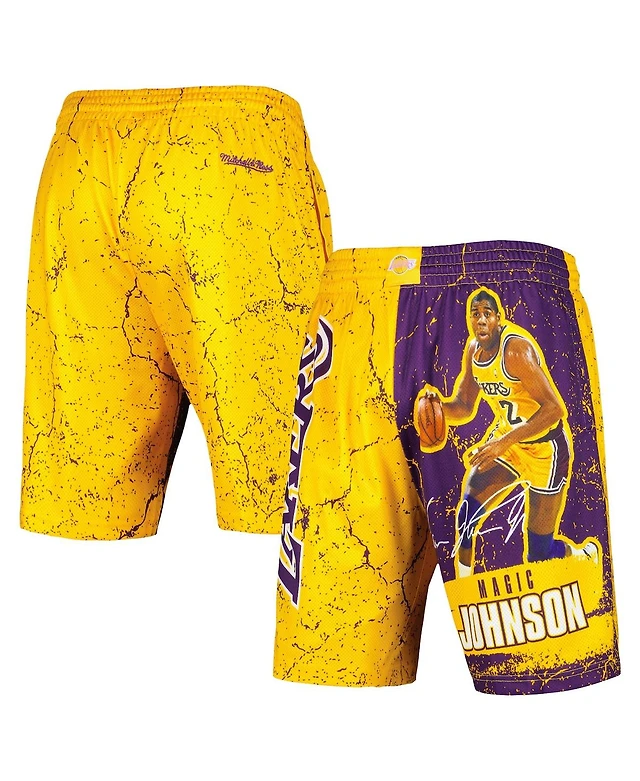 Men's Mitchell & Ness Magic Johnson Gold Los Angeles Lakers Hardwood Classics Player Burst Shorts