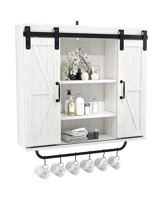 Mondawe Vintage White Rustic Wood Wall Storage Cabinet with Two Sliding Barn Door