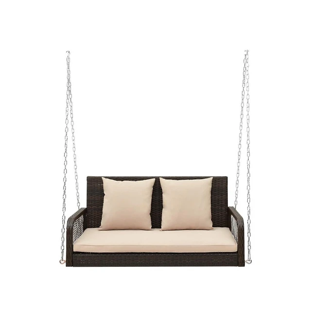 2-Person Patio Pe Wicker Hanging Porch Swing Bench Chair Cushion 800 Pounds