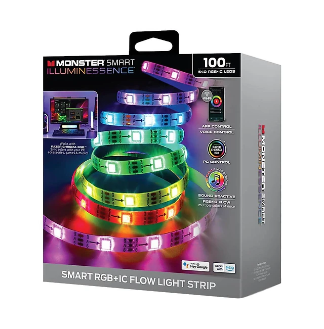 Monster 25 Ft. Sound Reactive Color Flow Indoor Led Light Strip with Razer Chroma Smart Sync