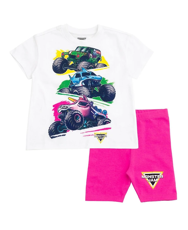 Monster Jam Toddler Girls Drop Shoulder T-Shirt and Bike Shorts Outfit Set
