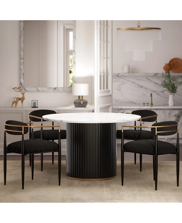 Modern Faux Marble Dining Room Set With 47" Round Table And 4 Boucle Armchairs for Kitchen Dinner