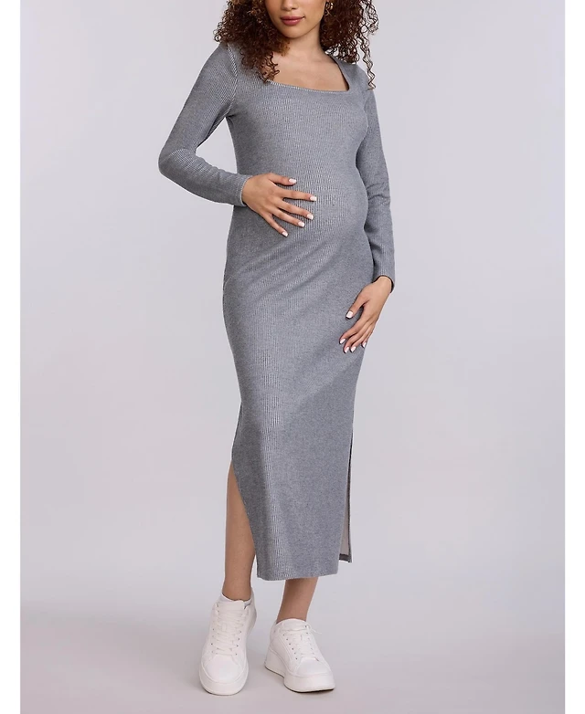 Motherhood Maternity Square Neck Rib Knit Long Sleeve Bodycon Maxi Dress