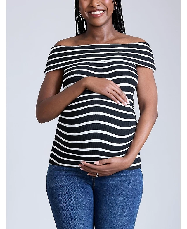 Motherhood Maternity Rib Knit Short Sleeve Off The Shoulder Top