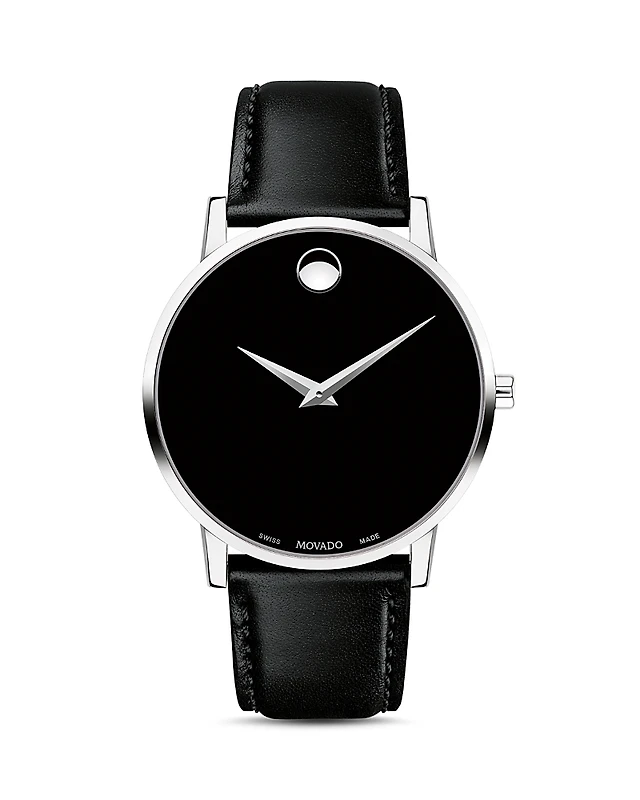 Movado Museum Classic Black Leather Strap Watch, 40mm