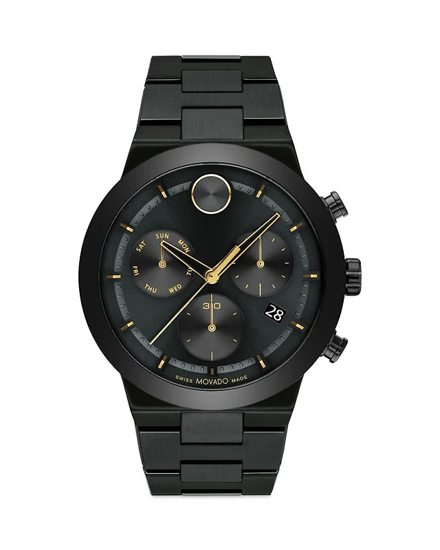 Movado Men's Bold Fusion Swiss Quartz Chronograph Ionic Plated Black Steel Bracelet Watch 44mm