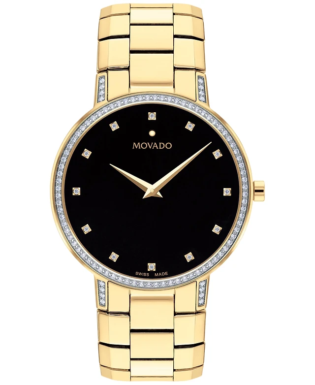 Movado Faceto Men's Swiss Diamond (3/8 ct. t.w.) Gold-Tone Pvd Bracelet Watch 39mm