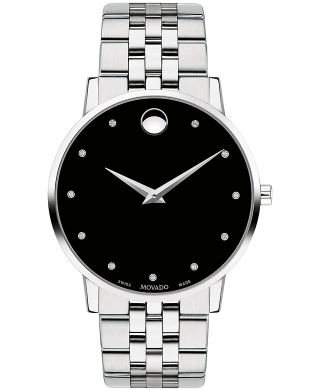 Movado Men's Swiss Museum Classic Diamond-Accent Stainless Steel Bracelet Watch 40mm