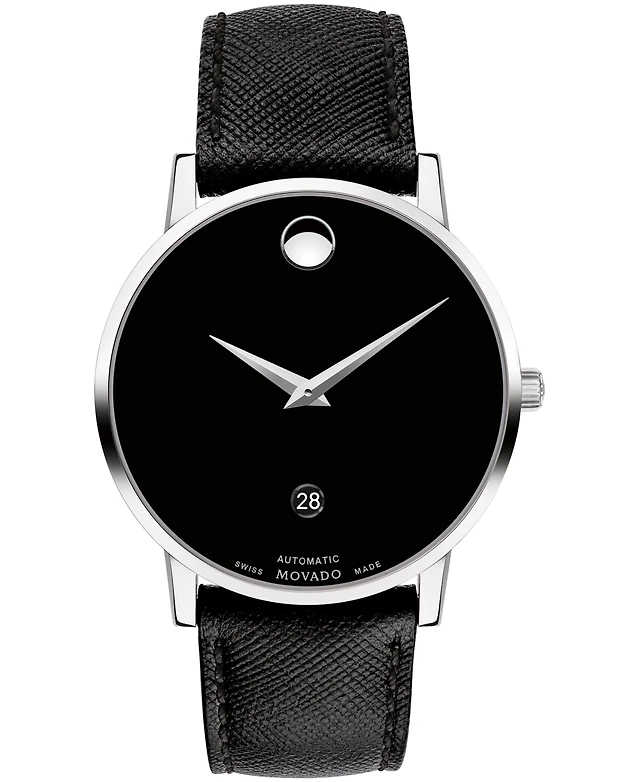 Movado Men's Swiss Automatic Museum Black Calfskin Leather Strap Watch 40mm