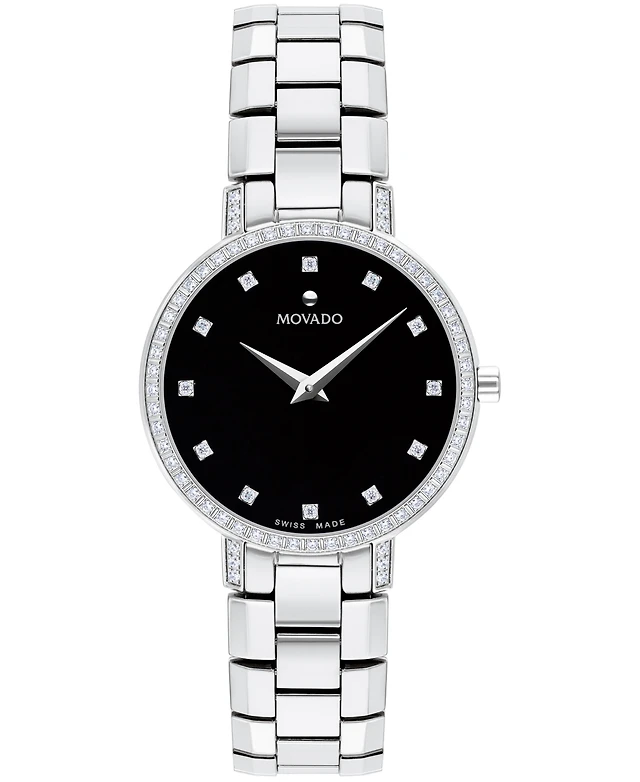 Movado Women's Swiss Faceto Diamond (1/4 ct. t.w.) Stainless Steel Bracelet Watch 28mm