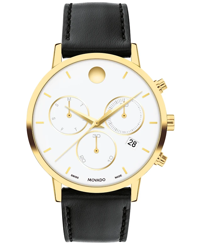 Movado Men's Museum Classic Swiss Quartz Chrono Leather Watch 42mm