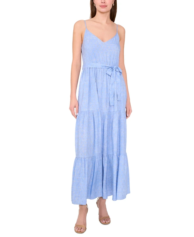 Msk Petite Printed V-Neck Sleeveless Belted Maxi Dress