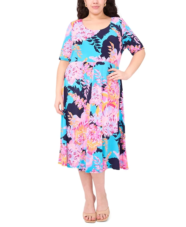 Msk Plus Printed Jersey Scoop-Neck Midi Dress
