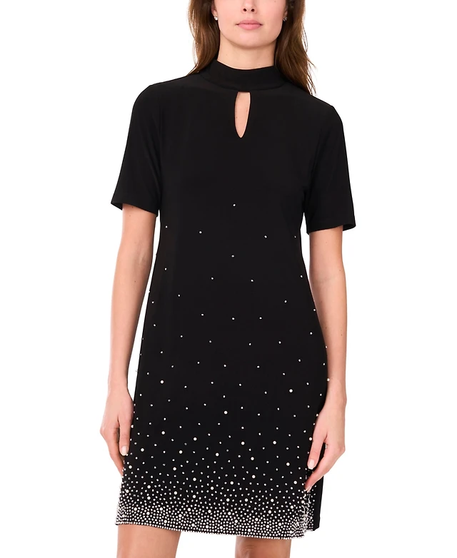 Msk Petite Short Sleeve Keyhole Beaded Dress