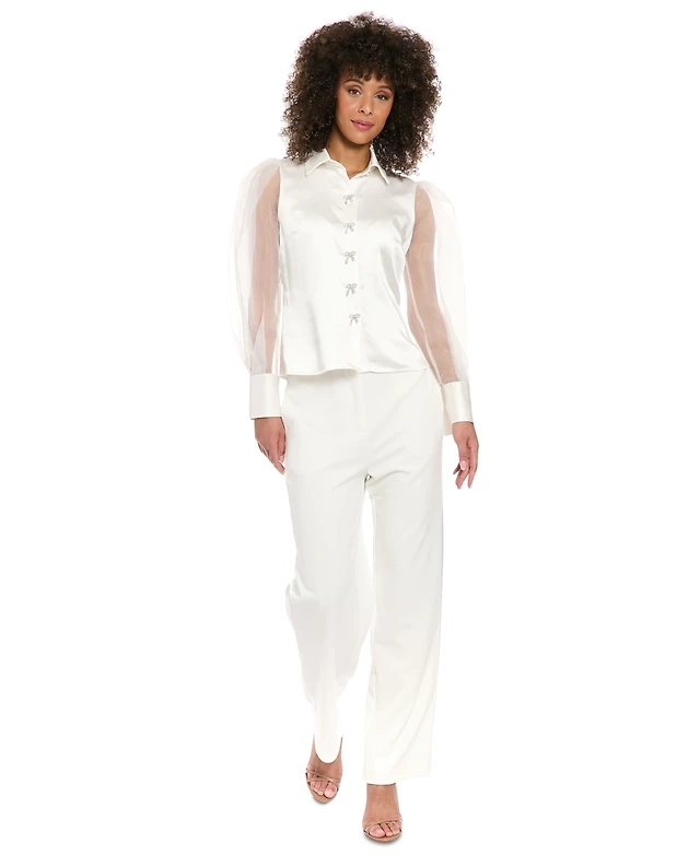 Muse Plus Bow-Trim Bishop-Sleeve Blouse
