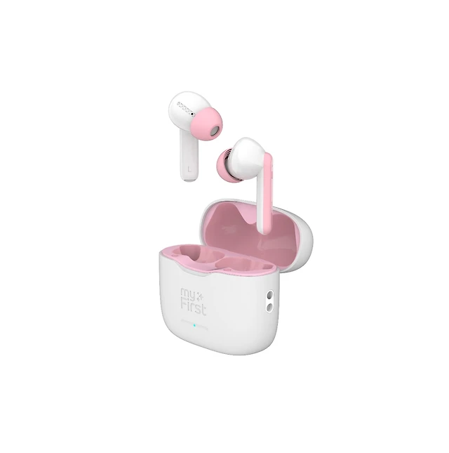 myFirst CareBuds (Cotton Candy) Kids Wireless Earbuds with 85dB Volume Limit, Built-in Mic, 6 Ear Tips, Anti-Lost Strap Easy Pairing, Gift for Kids 4-