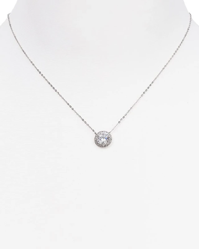 Cubic Zirconia Double Stone Pendant Necklace, 16"-18"