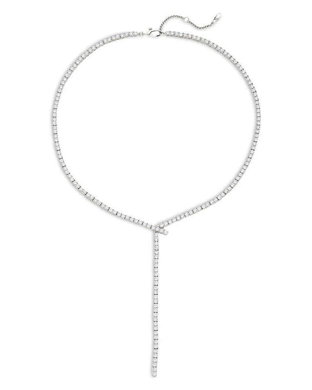 Cubic Zirconia Collar Necklace in Rhodium Plated, 18"