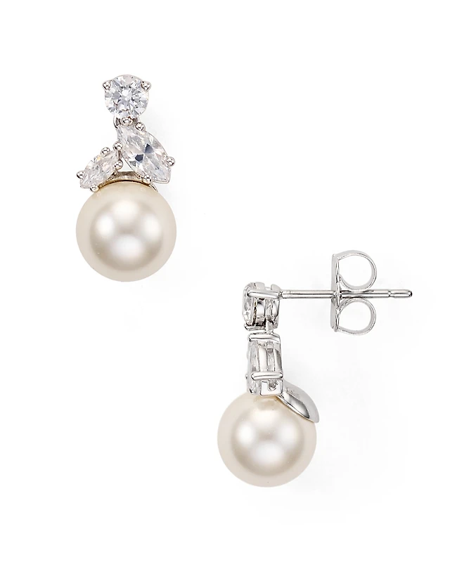 Nadri Chiara Stone Cluster & Imitation Pearl Drop Earrings