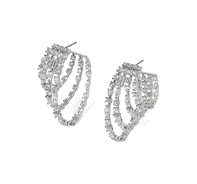 Nadri It Girl Cubic Zirconia Triple Row J Hoop Earrings